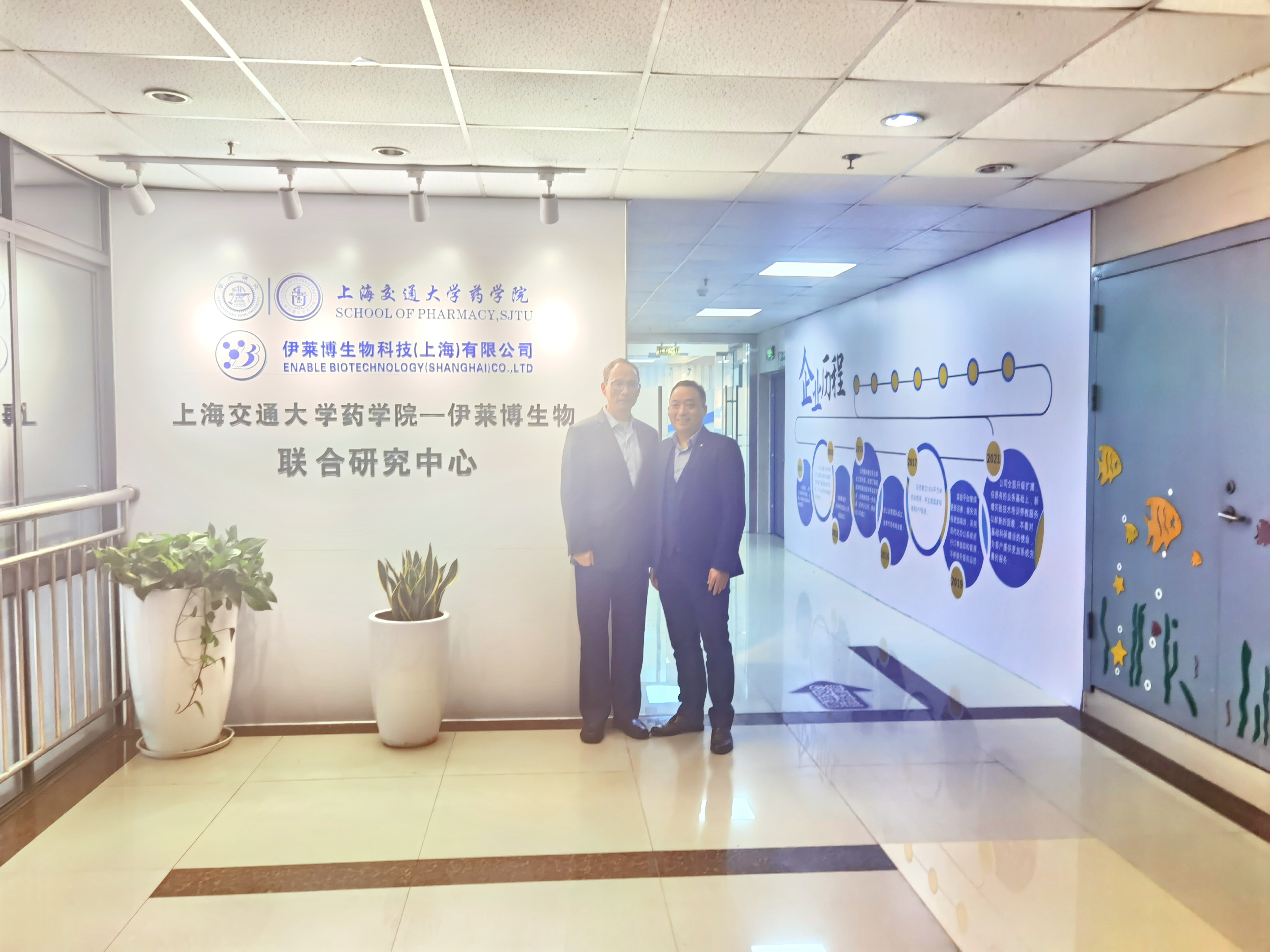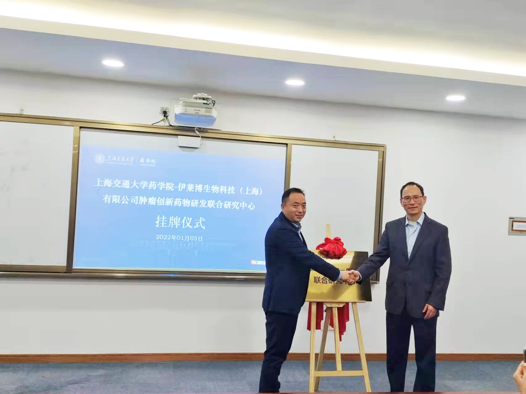 2022年1月5日,上海交通大学药学院—乐鱼网页版登录入口生物联合研究中心成立,分别在上海交通大学药学院和乐鱼网页版登录入口举行了揭牌仪式。上海交通大学药学院院长钱峰教授,同仁医院副院长陶琨,上海交通大学—杭州未来科技城肿瘤免疫技术联合研究中心执行院长侯尚伟博士,乐鱼网页版登录入口总经理葛垒,副总经理邵志毅,市场部总监刘兰共同参与了揭牌仪式。