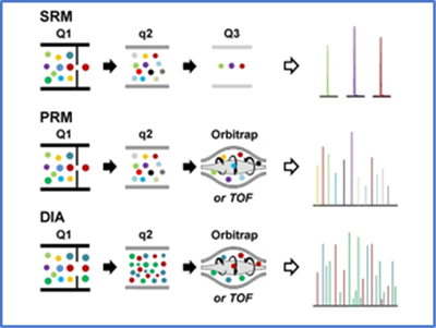经典的蛋白质绝对定量主要依赖于抗体和重组蛋白质标准品,例如ELISA。研究人员利用串联质谱仪进行多蛋白质同时绝对定量的新方法-MRM/PRM。 MRM/PRM是质谱技术的一种扩展,用于对特定的蛋白质或肽进行高灵敏度和高选择性的定量分析。特别适合于生物样本中低丰度蛋白质的检测。这种方法在蛋白质组学研究中具有重要意义,尤其是在寻找生物标志物和研究疾病机制方面。