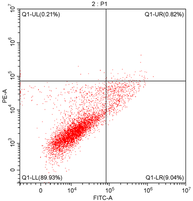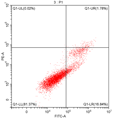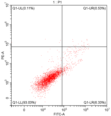 细胞膜是一选择性的生物膜,一般的生物染料如PI等不能穿过质膜。当细胞坏死时,质膜不完整,PI就进入细胞内部,它可嵌入到DNA或RNA中,使坏死细胞着色,凋亡细胞和活细胞不着色。而一些活细胞染料由于为亲脂性物质,可跨膜进入活细胞,因而可进行活细胞染色。Hoechst33342是一种活性荧光染料且毒性较弱,它是双苯并咪唑的一种衍生物。与DNA特异结合(主要结合于A-T)碱基区),显示凋亡细胞和活细胞。凡是看到有凋亡小体的细胞都是凋亡细胞。