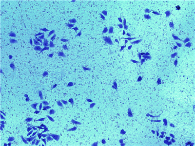 细胞划痕实验是简捷测定细胞迁移运动与修复能力的方法,在体外培养皿或平板培养的单层贴壁细胞上,用微量枪头或其它硬物在细胞生长的中央区域划线,去除中央部分的细胞,然后继续培养细胞至实验设定的时间是一种简单易行的检测细胞运动的方法,实验成本低,可以用来检测贴壁生长肿瘤细胞的侵袭转移能力。Transwell的基本原理是将transwell小室放入培养板中,小室内称为上室,培养板内称为下室,上下层培养液以聚碳酸酯膜相隔,上室内添加上层培养液,下室内添加下层培养液。将细胞种在上室内,由于膜有通透性,下层培养液中的成分可以影响到上室内的细胞,从而可以研究下层培养液中的成分对细胞生长、运动等的影响。