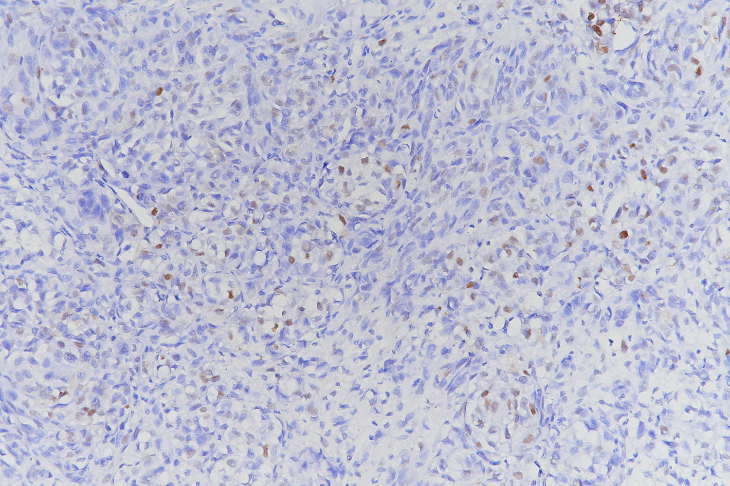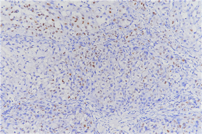 (6)DAB染色3-10min,自来水冲洗,苏木素复染, 1%盐酸酒精分化,显微镜下观察,控制染色程度。