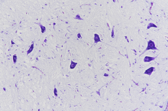 染色结果:尼氏体呈紫色、细胞核呈蓝色